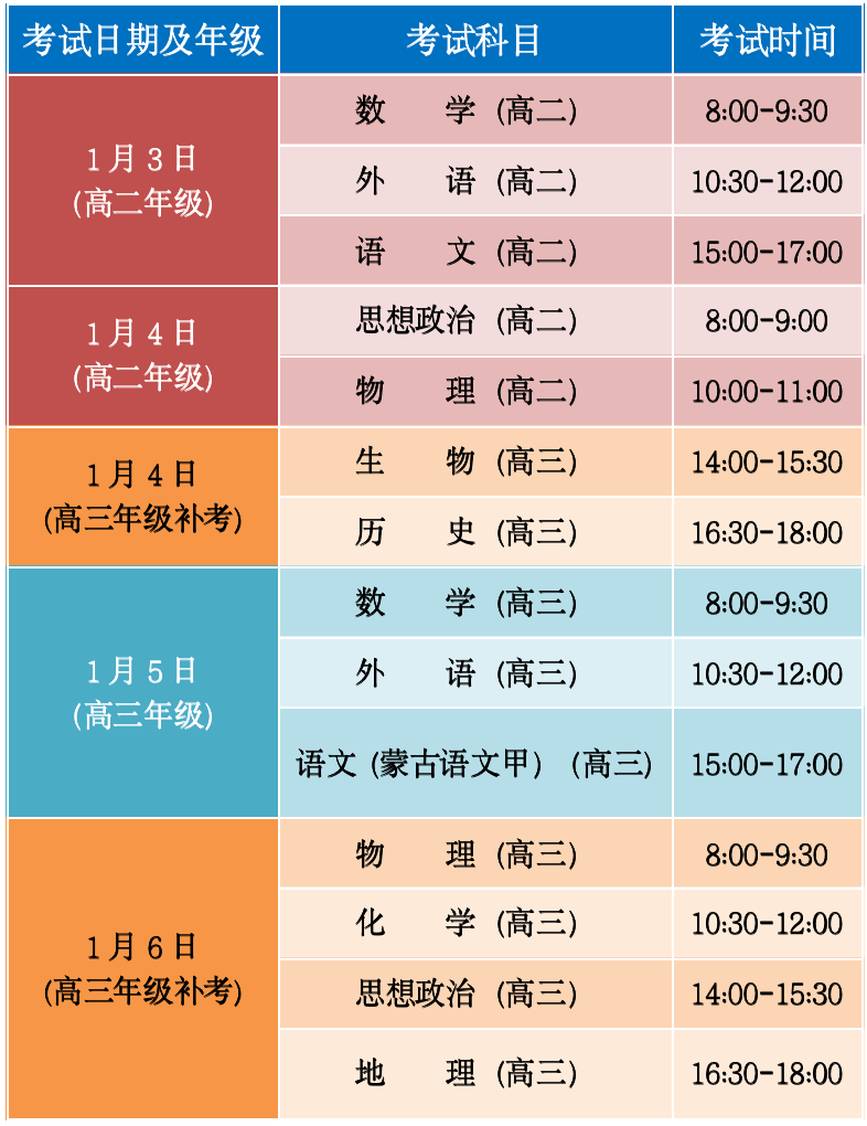 高二年级开考语文、数学、外语、物理、思想政治5个科目,高三年级开考语文、数学、外语3个科目。高三年级考生,如已考生物、历史、地理、物理、