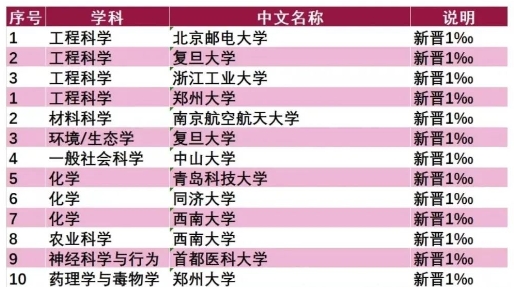 日前,科睿唯安公布了最新的全球ESI学科排名情况,
