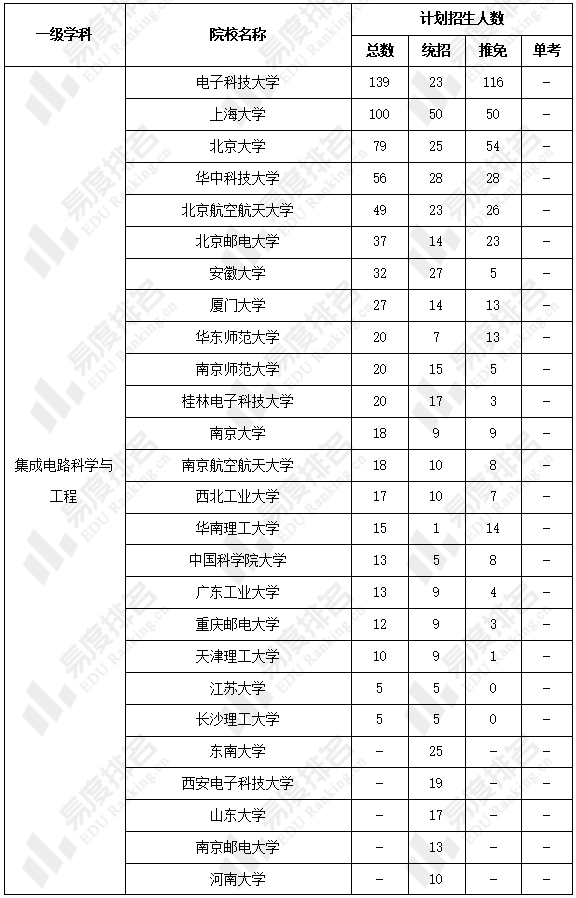 2024年各院校交叉学科计划招生总人数达1200人(不含设计学一级学科、文物专业学位类别招生人数),其中集成电路科学与工程一级学科计划招生818人,占比达68%。