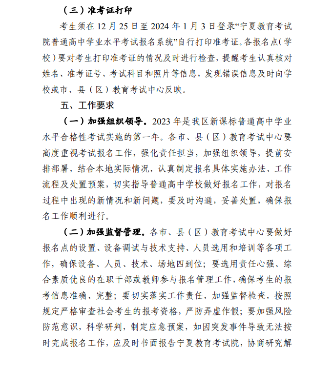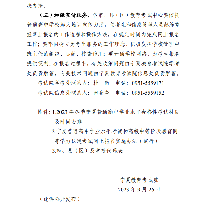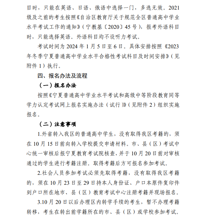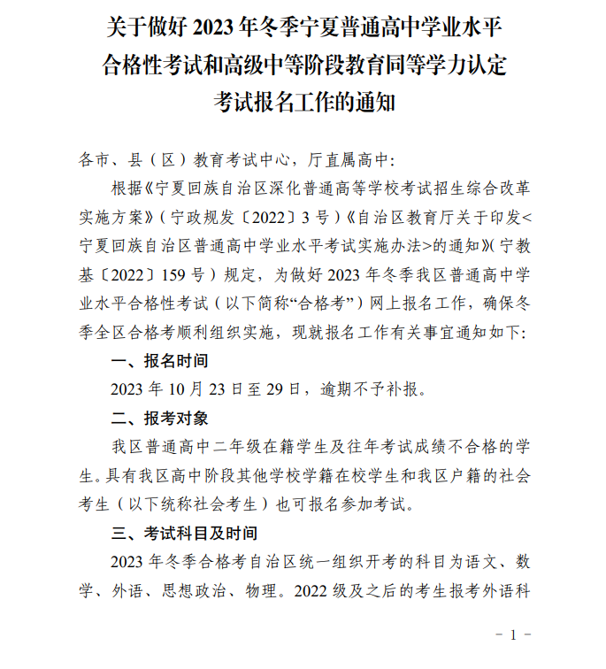 关于做好2023年冬季宁夏普通高中学业水平合格性考试和高级中等阶段教育同等学力认定考试报名工作的通知