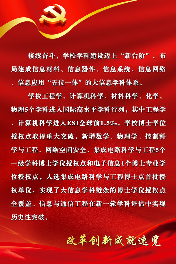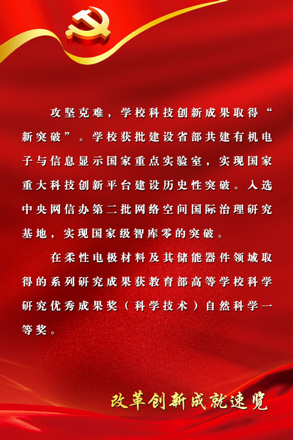 第三次党代会以来的五年,学校以实现高水平科技自立自强为己任,着力提升科技创新能力,不断完善社会服务体系,主动服务国家重大战略需求,打造学校信息特色、多科交融立体学科新生态,在学科建设、科学研究、社会服务等方面取得显著成就和长足发展,为中国式现代化江苏新实践贡献南邮力量。