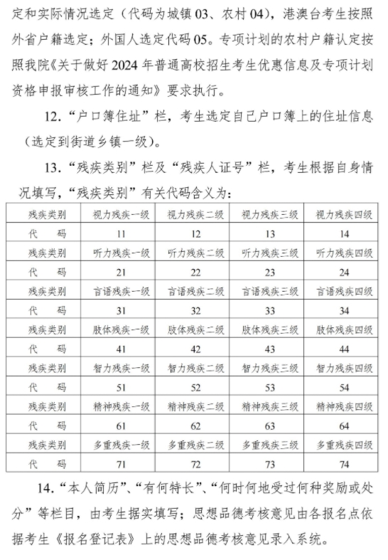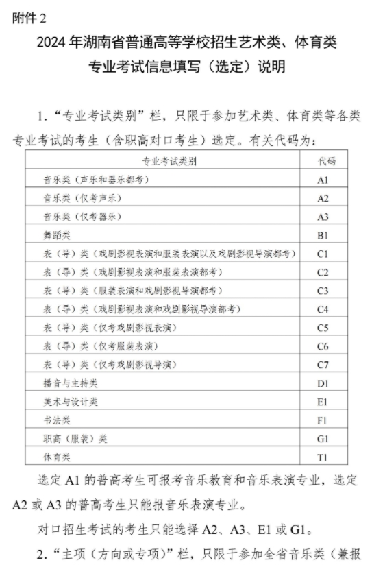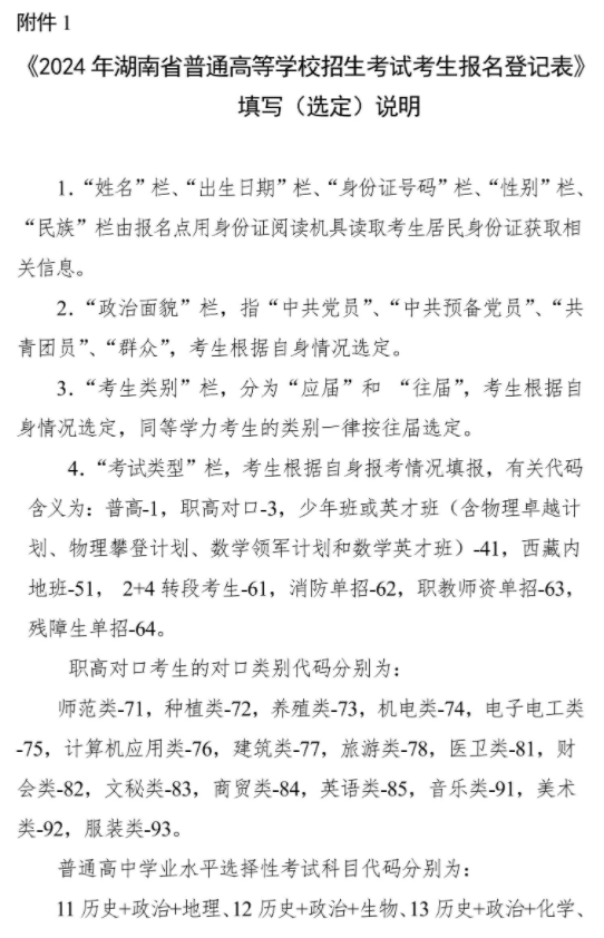 1.《2024年湖南省普通高等学校招生考试考生报名登记表》填写(选定)说明