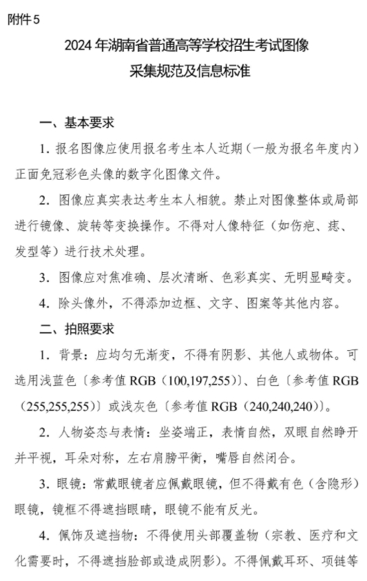 5.2024年湖南省普通高等学校招生考试图像采集规范及信息标准