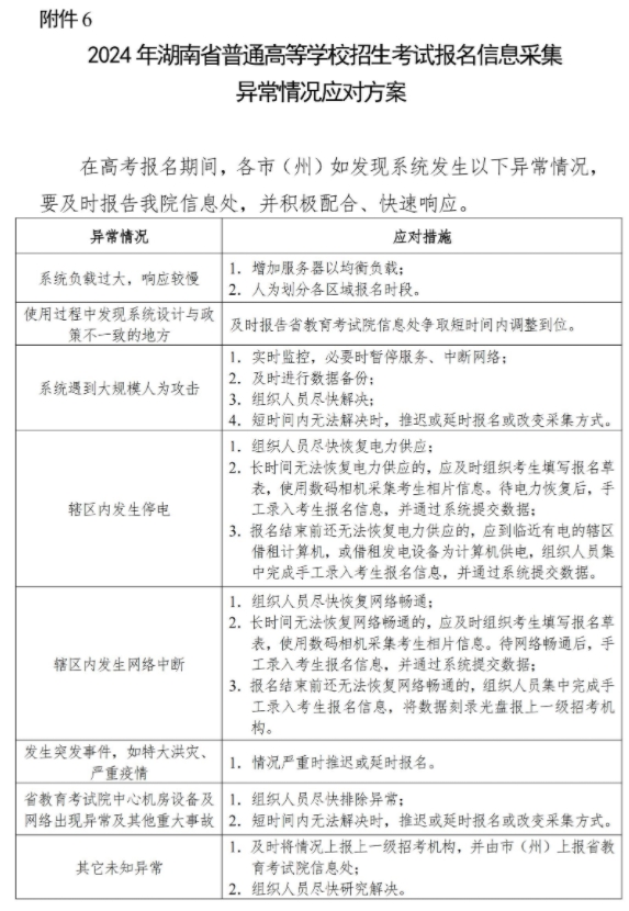 6.2024年湖南省普通高等学校招生考试报名信息采集异常情况应对方案