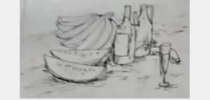 色彩考题:线稿(如下图),含瓶子、水果等物品