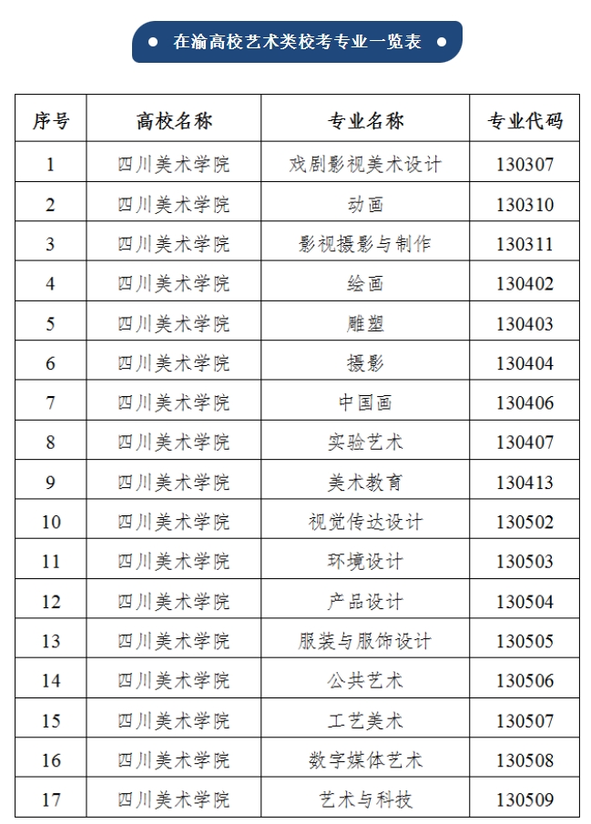 重庆地区普通高校艺术类专业校考资格名单来了!
