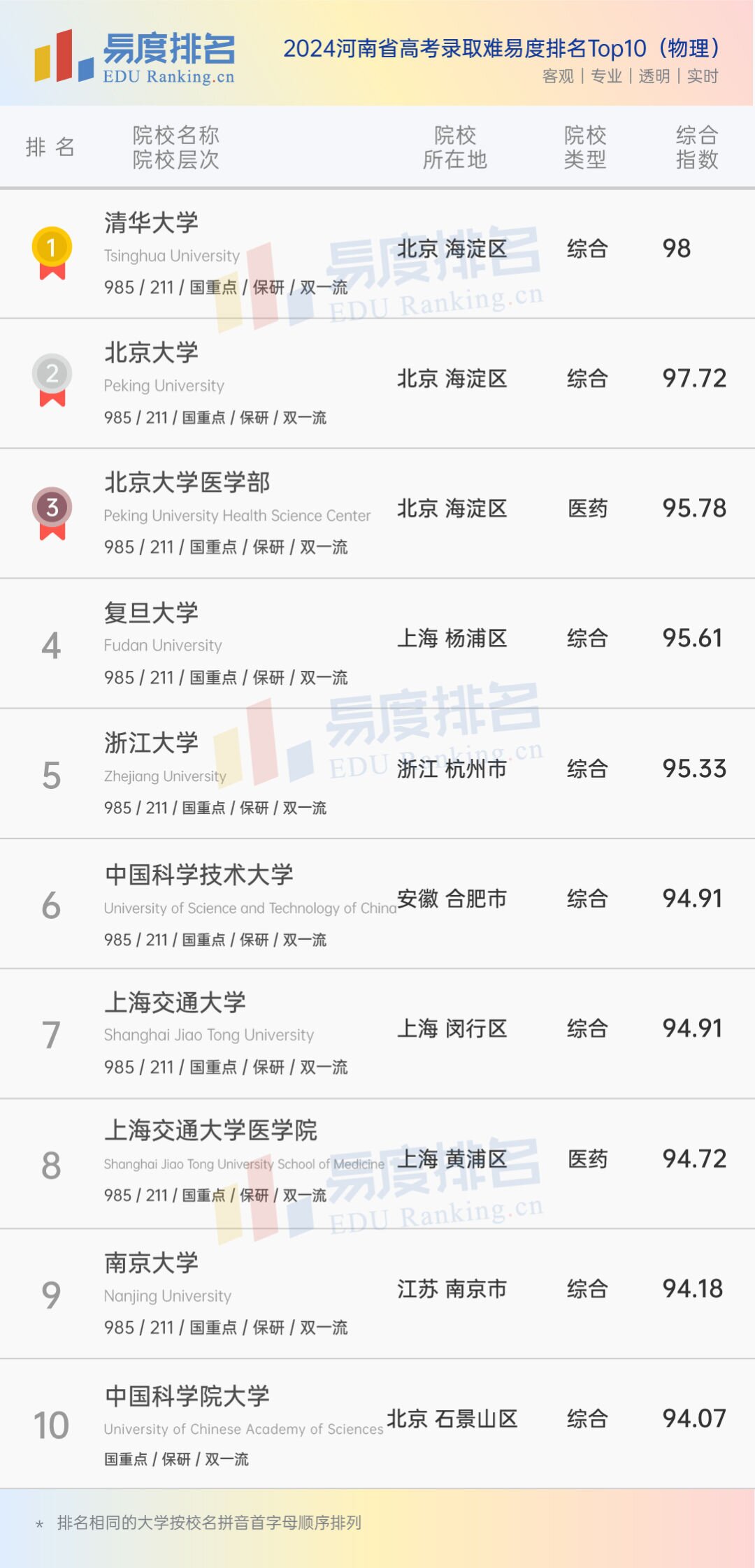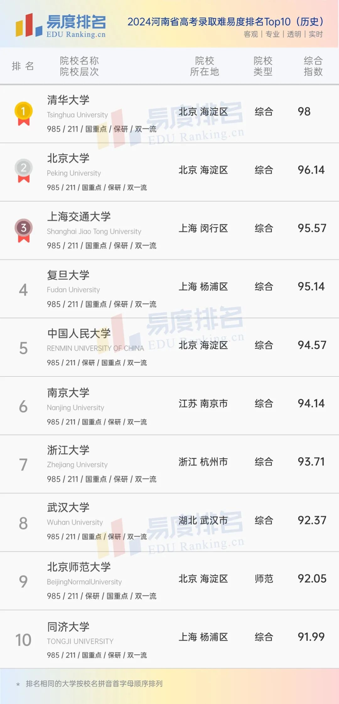 本期将公布“2024河南省高考录取难易度排名”前100位。