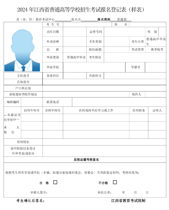 2024年高考报名登记表(样表)