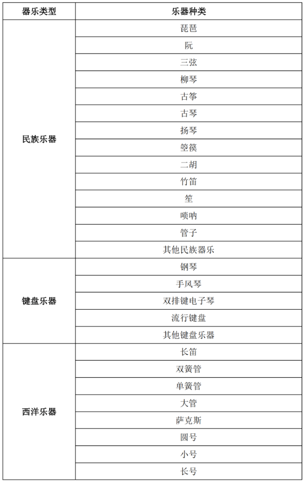 江西省 2024 年省统考乐器类型及种类