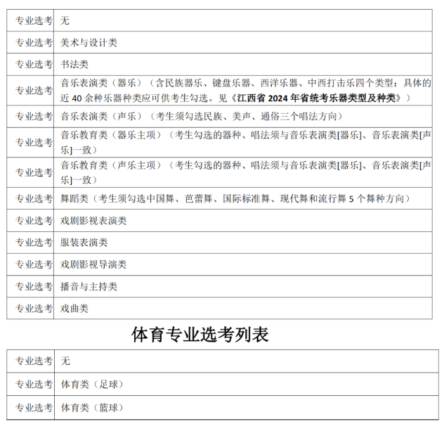 14.艺体选考:艺术考生可在音乐类、舞蹈类、表(导)演类、