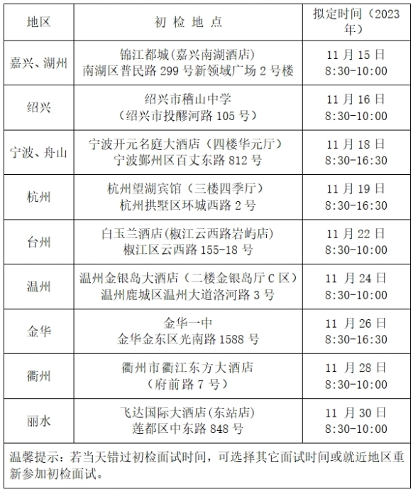 温馨提示:若当天错过初检面试时间,可选择其它面试时间或就近
