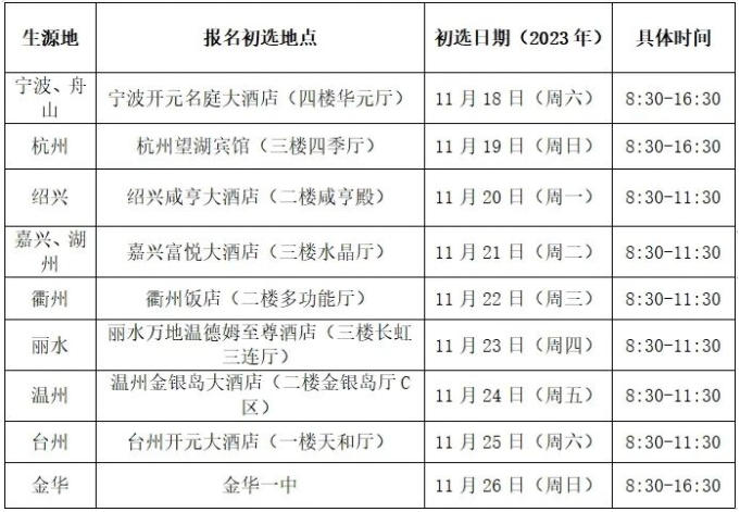 符合报考条件的考生,须在中国民用航空招飞信息系统(http://mhzf.caac.gov.cn)进行网上注册报名,可就近选择初选地点进行现场报名。初检面试时间和地点如下: