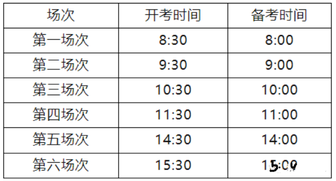 3.考生考试场次随机分配,考生按分配的场次参加考试。