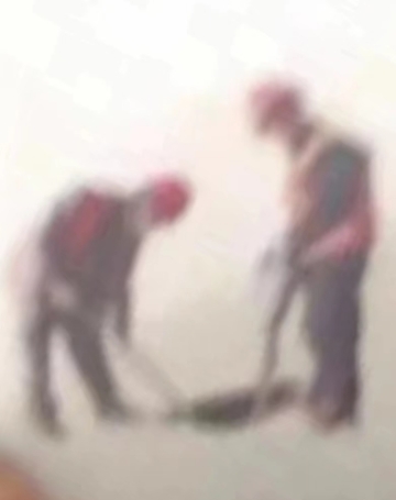 考试内容:双人动态组合。正在施工的两个工人,一站姿低头,一站姿弯腰。