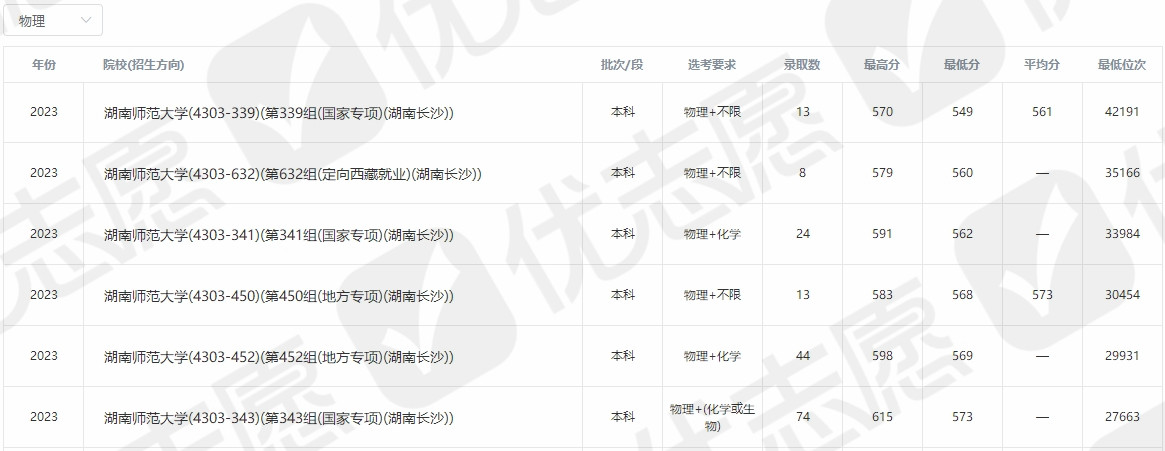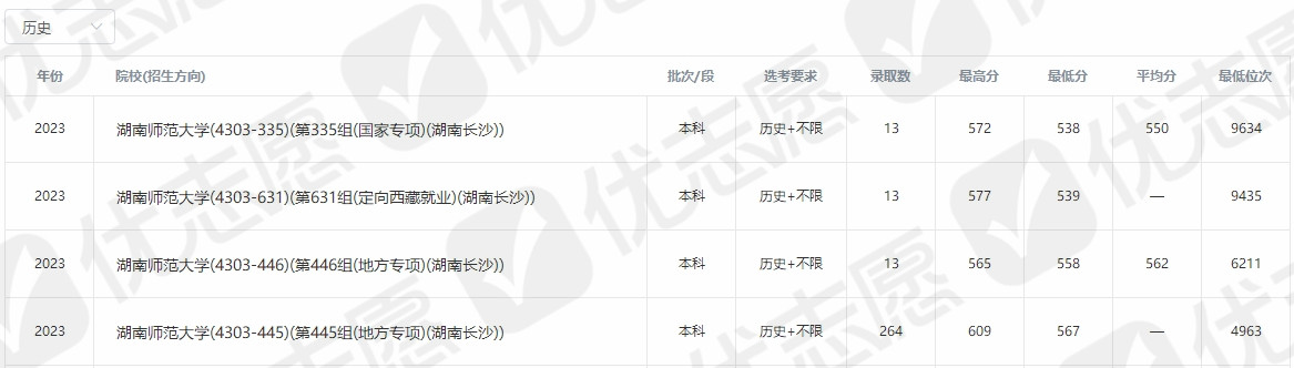 附:湖南师范大学2023年部分院校录取分数线(供2024学子参考)