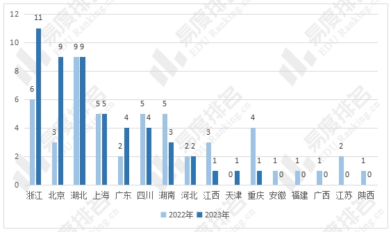 图 1 2022-2023年物理竞赛入选国家集训队各省人数