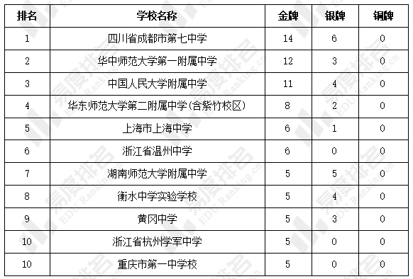 表 3 2023年中学生物理竞赛决赛金牌TOP10高中