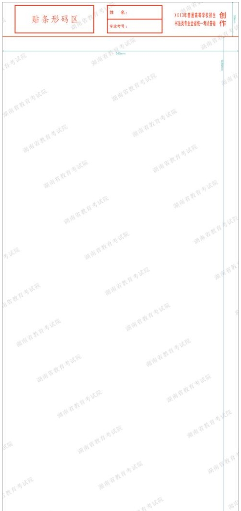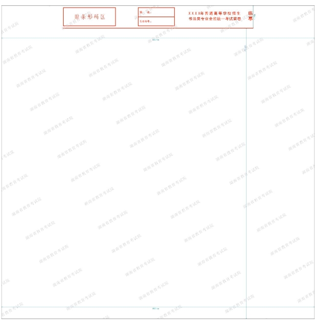 13.考生须在贴有条形码的一面书写。书法评卷采取计算机网络辅助评卷方式,要保持条形码及条形码粘贴区域(红线以上区域,下同)清洁,如条形码或条形码粘贴区域污损,造成无法评阅答卷(宣纸)者,后果自负。