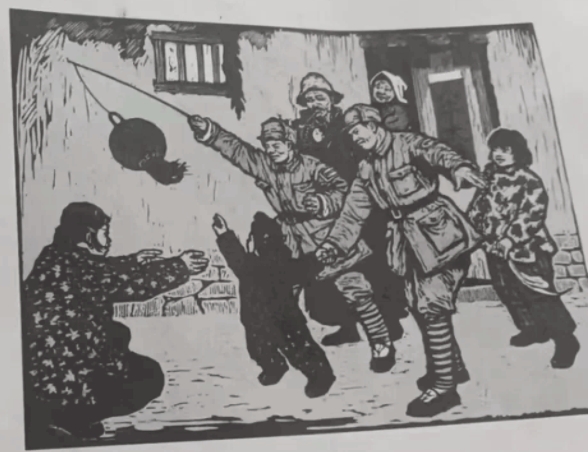 考试题目:请参考《军民一家》的造型表现手法和构图,绘制一幅现实生活中节日欢庆活动为主题的作品,以线造型为主要表现手段