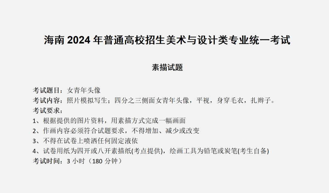 海南2024年美术类专业统考/联考考题(素描)