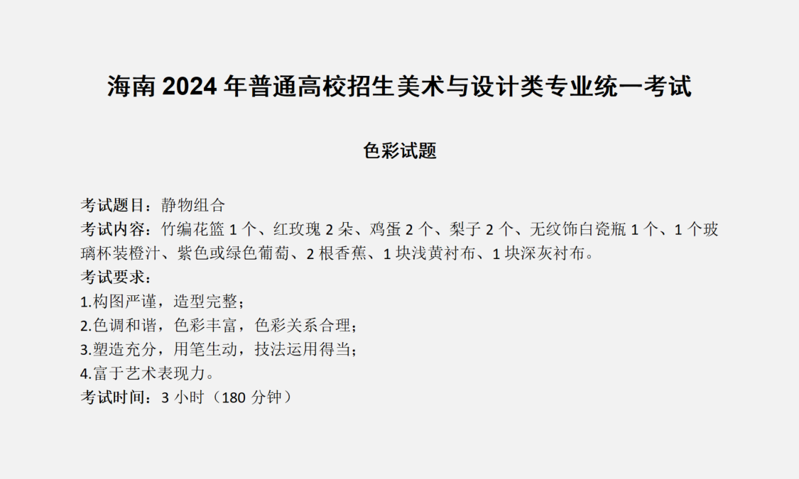 海南2024年美术类专业统考/联考考题(色彩)