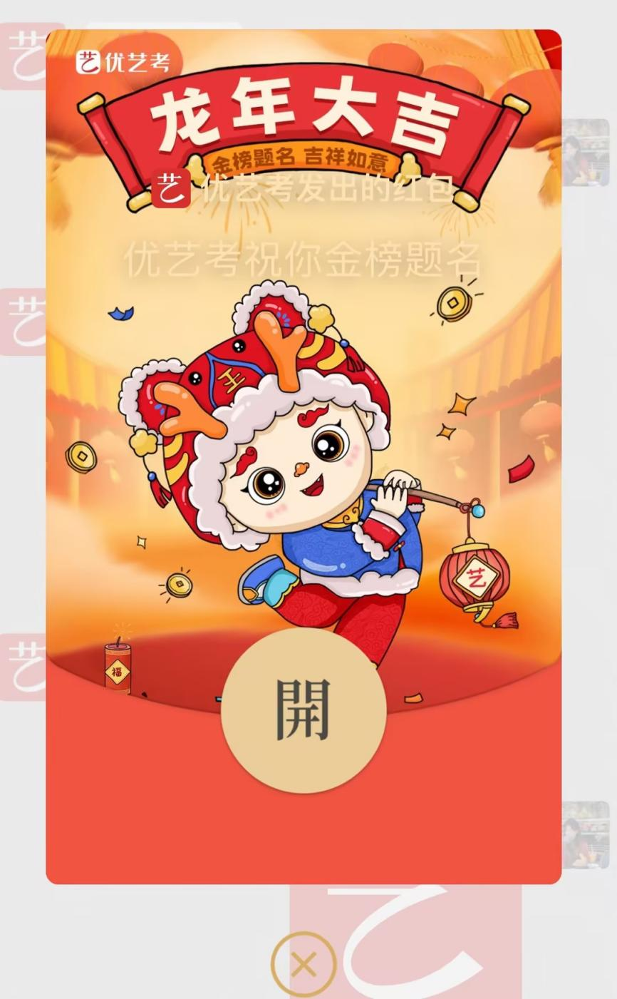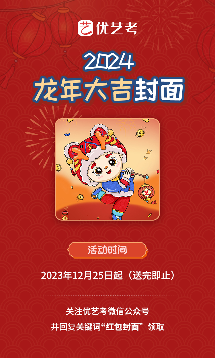 关注优艺考公众号并回复关键词“红包封面”即可领取~