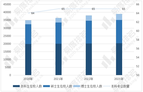 图 5 2020-2023年电子科技大学在校生人数(全日制)及本科专业数量
