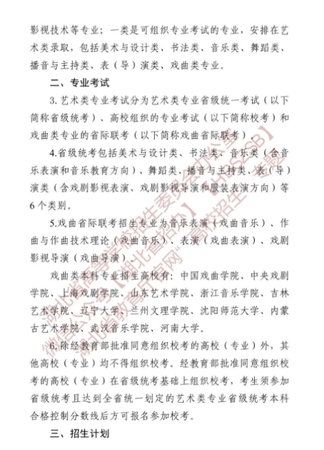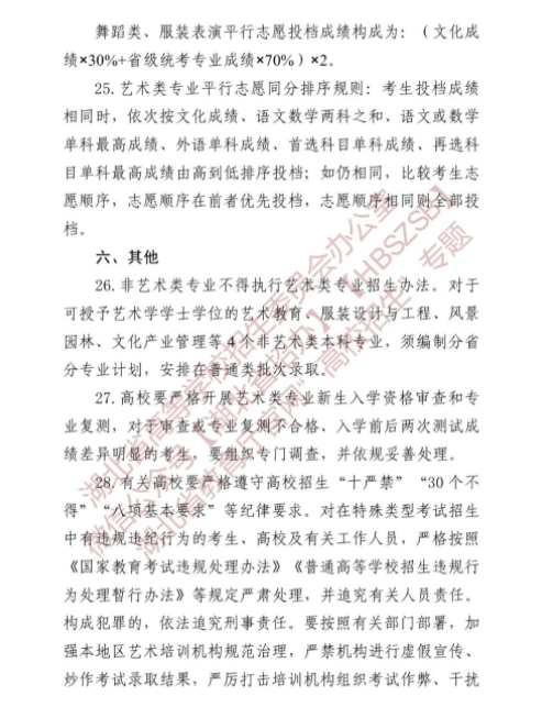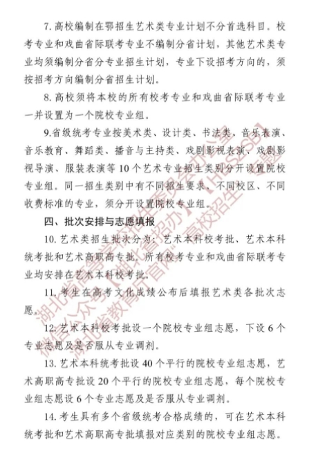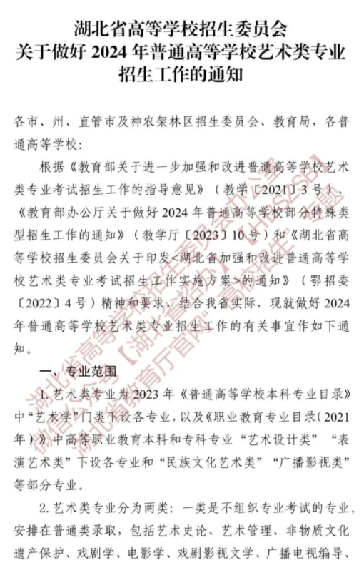 湖北关于做好2024年普通高等学校艺术类专业招生工作的通知