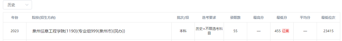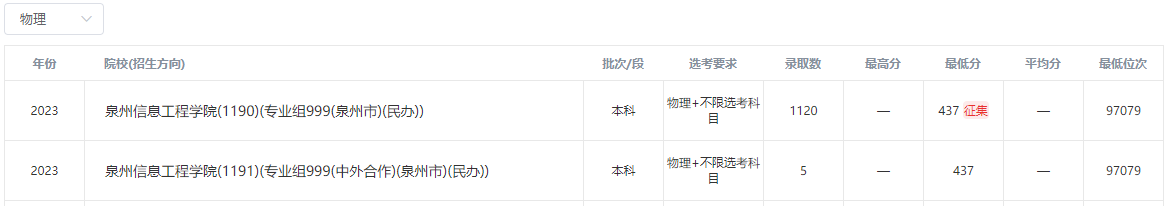 2023年泉州信息工程学院录取录取分数线: