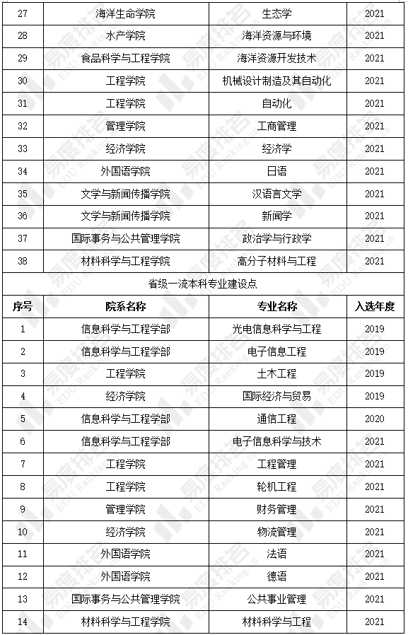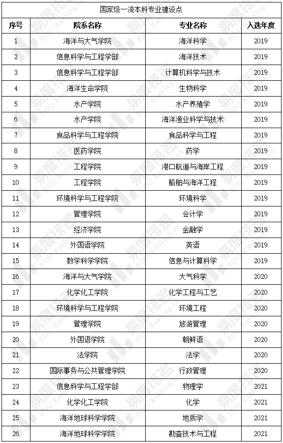 二、中国海洋大学累计获批38个国家级一流本科专业建设点
