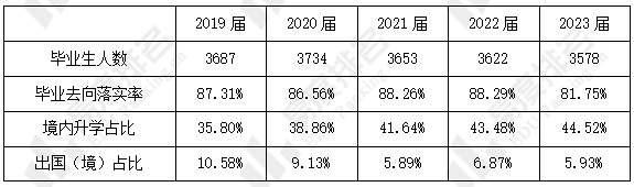 注:2019-2021届就业数据来自毕业生的规模、结构、就业率和就业流向情况,数据统计日期截止到每年12月底;2022-2023届就业数据来自教学质量报告,数据统计日期截止到每年8月底。