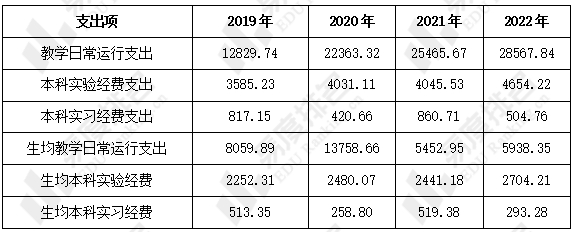 注:教学日常运行支出、本科实验经费支出、本科实习经费支出单位:万元;生均教学日常运行支出、生均本科实验经费、生均本科实习经费单位:元。
