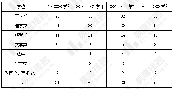 注:2022-2023学年新增食品营养与健康专业,停招专业:军事海洋学、应用气象学、保密管理、生物工程、航海技术、文化产业管理、编辑出版学、社会学、材料化学、教育技术学。