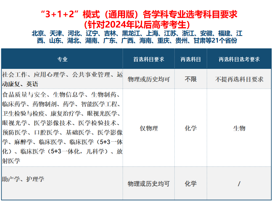 第二类是只对首选科目提出要求的,如“物理(1门科目考生必须选考方可报考)”,表示首选科目为物理、再选科目为任意2科的考生方可报考。