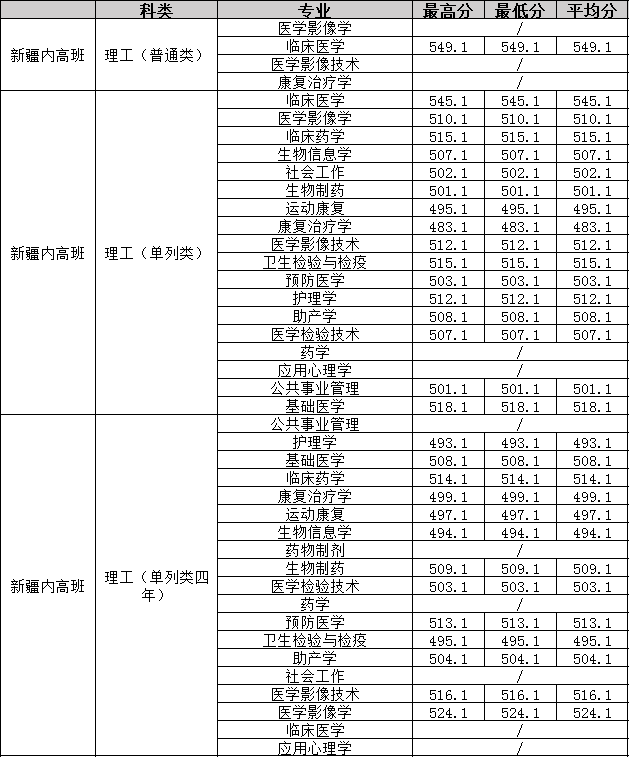 福建医科大学2022年新疆维吾尔自治区招生录取分数线