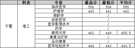 福建医科大学2020年宁夏回族自治区招生录取分数线