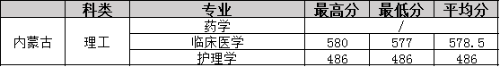 福建医科大学2020年内蒙古自治区招生录取分数线