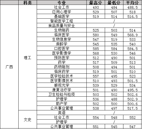 福建医科大学2022年广西壮族自治区招生录取分数线