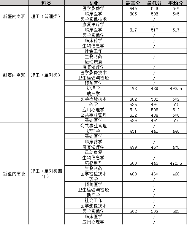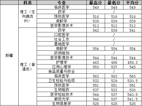 福建医科大学2020年新疆维吾尔自治区招生录取分数线