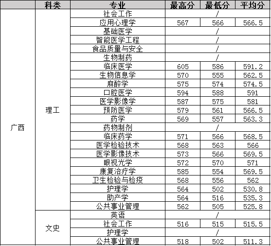福建医科大学2020年广西壮族自治区招生录取分数线