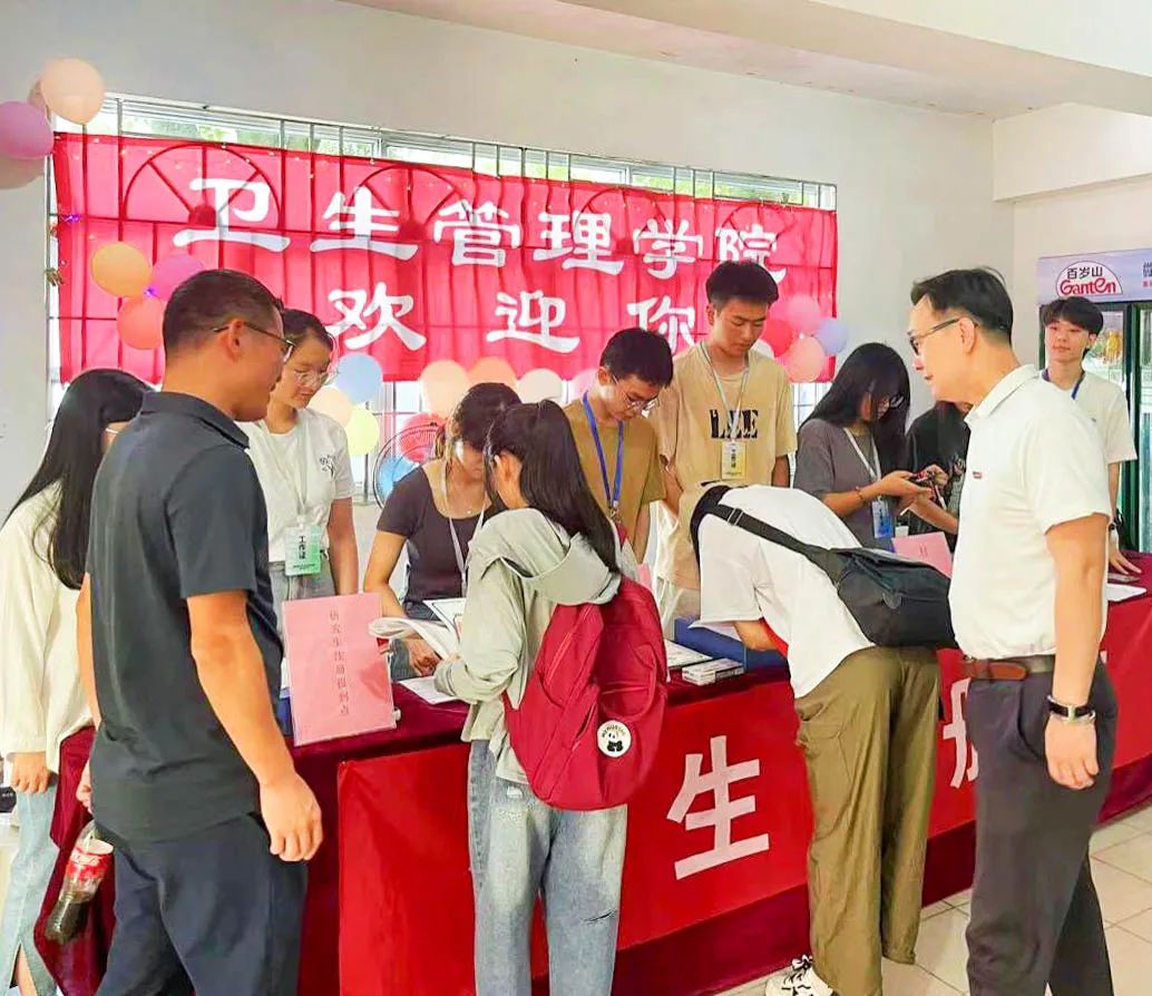 公共卫生学院又是一年迎新时。公共卫生学院迎新接待工作有条不紊进行,校园的各个角落里随处可见迎新工作人员的身影,从定点迎接,到报到注册,再到入住寝室,热情的志愿者们用爱心去迎接每一位新同学的到来。学院领导深入新生报到现场指导迎新工作,了解新生报到情况,并与家长亲切交谈,走访新生宿舍,慰问新生,勉励新生积极融入大学生活,开启新征程!