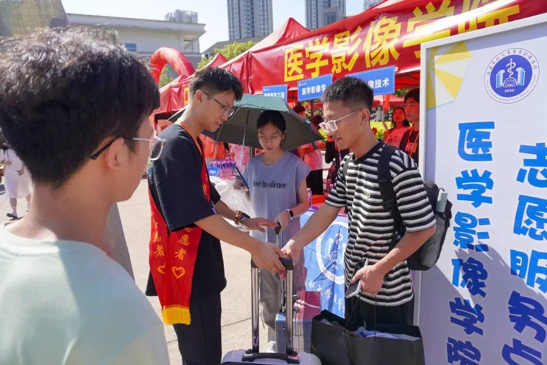 医学影像学院为保证本次迎新工作的顺利进行,学院党委用心布置迎新方案,匠心打造报到仪式、暖心安排后勤保障,扎实推进“三心”服务,确保工作有序开展。迎新当日,志愿服务队、新生助导、团学干部们热情洋溢地接待每一位新生,勇担“引路人”、提供“一站式”、“一对一”周到的入学报到服务,同时,为协同推进家校育人体系,举办新生家长见面会。全心全意为2023级新生打造温馨、安全、有序的入学体验,顺利开启大学的新篇章。