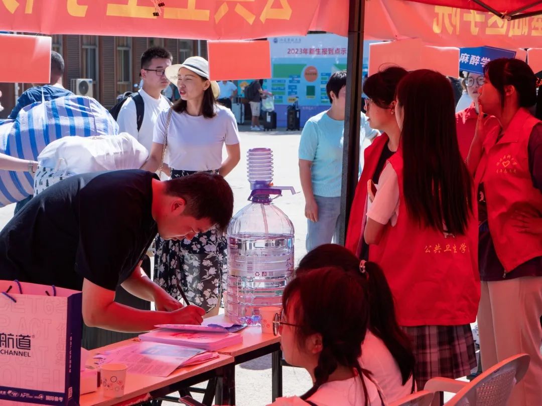 健康学院报到当天,健康学院的同学们早早地就等候在现场,支帐篷,准备物资,向来自五湖四海的2023级新生表达最热烈的欢迎。学院领导们也深入迎新现场,了解新生入学感受,给予了新生们亲切的关怀与问候,欢迎他们成为新的健康人。师生志愿者为新生们办理入学手续、搬运行李、解答疑问、分发入学小礼物,一声声满怀亲切的话语,一份份带着情谊的礼物,无不让新生们感受到温暖与亲切。