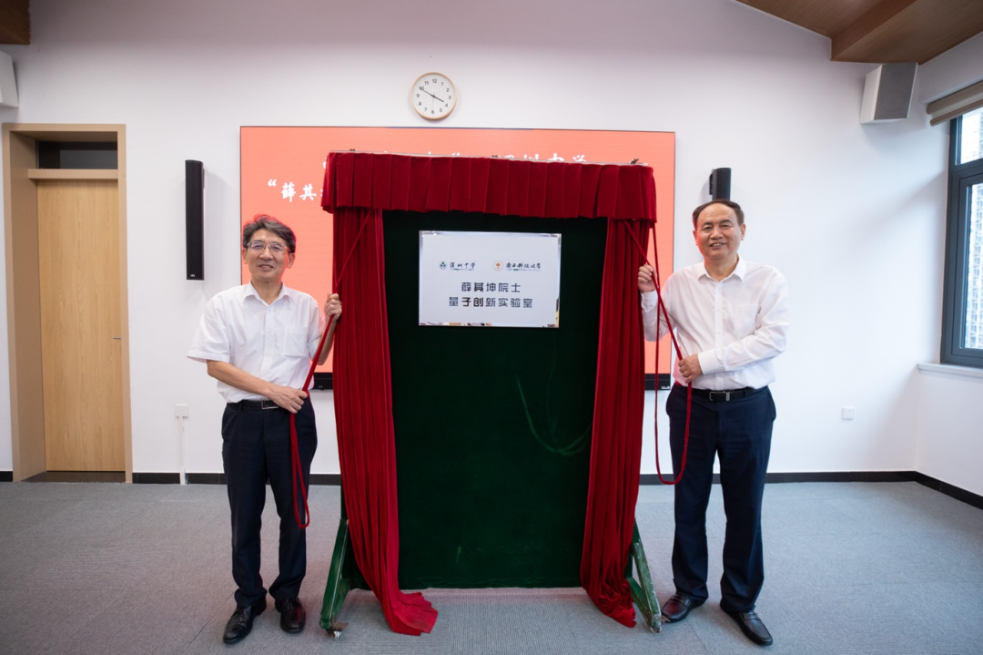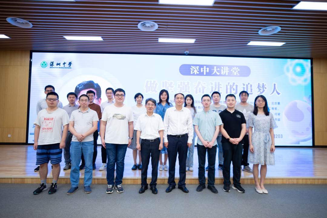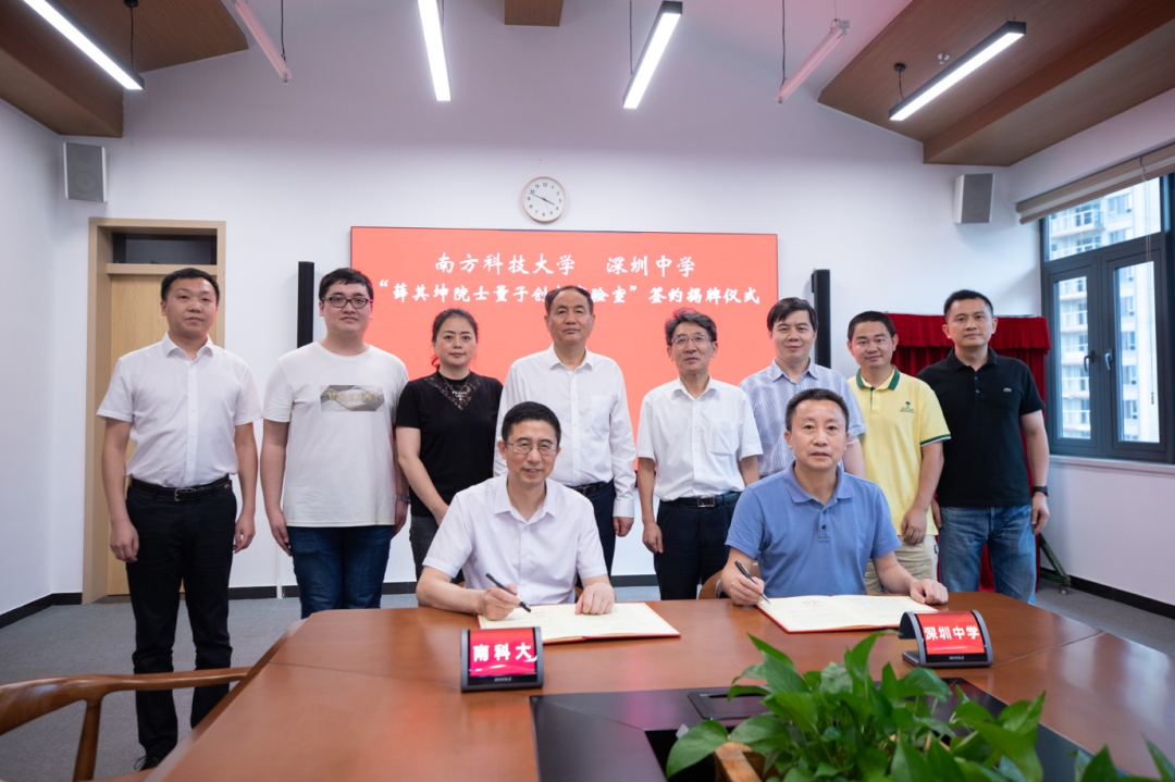 6月16日下午,“薛其坤院士量子创新实验室”在深圳中学正式签约揭牌。南方科技大学校长薛其坤院士参加活动,并为深圳中学师生作题为“胸怀祖国 放眼世界 做坚强奋进的追梦人”的专题报告,线上线下约2000名深圳中学学子聆听了报告。深圳中学校长朱华伟教授等领导以及师生代表,南科大教务长方红卫以及相关教授代表、部门负责人参加活动。