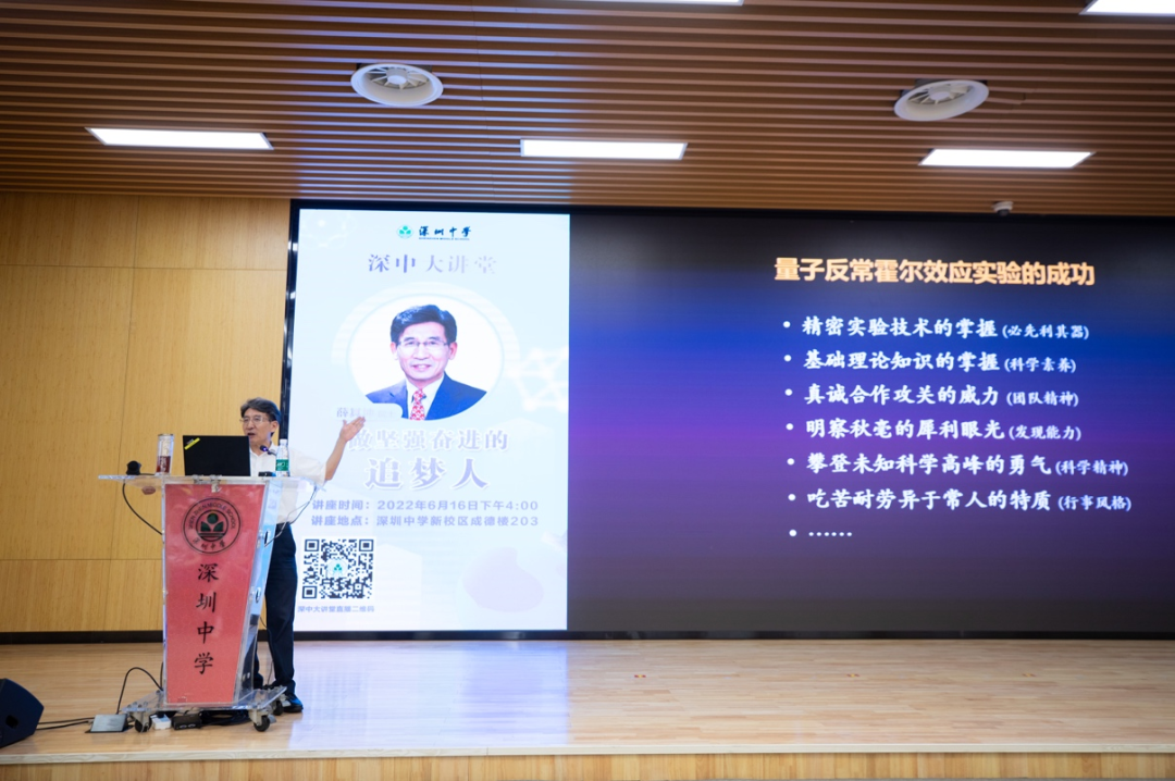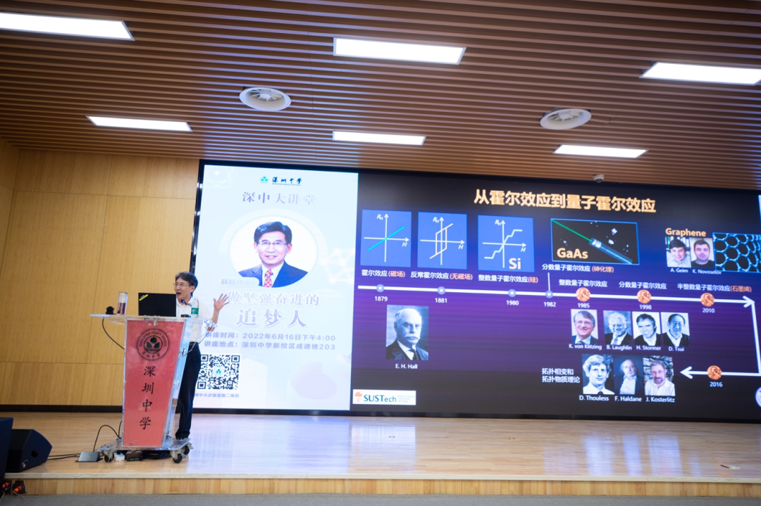 薛院士详细地为同学们科普了现在“量子反常霍尔效应”的前沿应用,同时也提到自己“以身作则”的教育理念和现阶段中学教育所面临的挑战,在场听讲的老师深受启发。