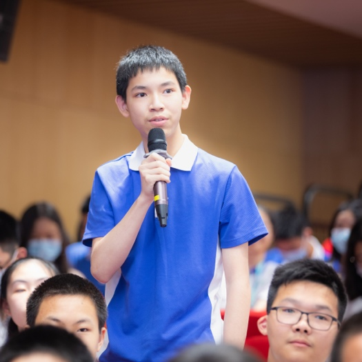 薛其坤院士图文并茂的讲座赢得了在场师生的热烈掌声。在讲座结束后的交流环节,深中的同学们分别就“量子反常霍尔效应”的科研应用前沿和人才培养教育等方面的问题,与薛院士进行了互动交流。