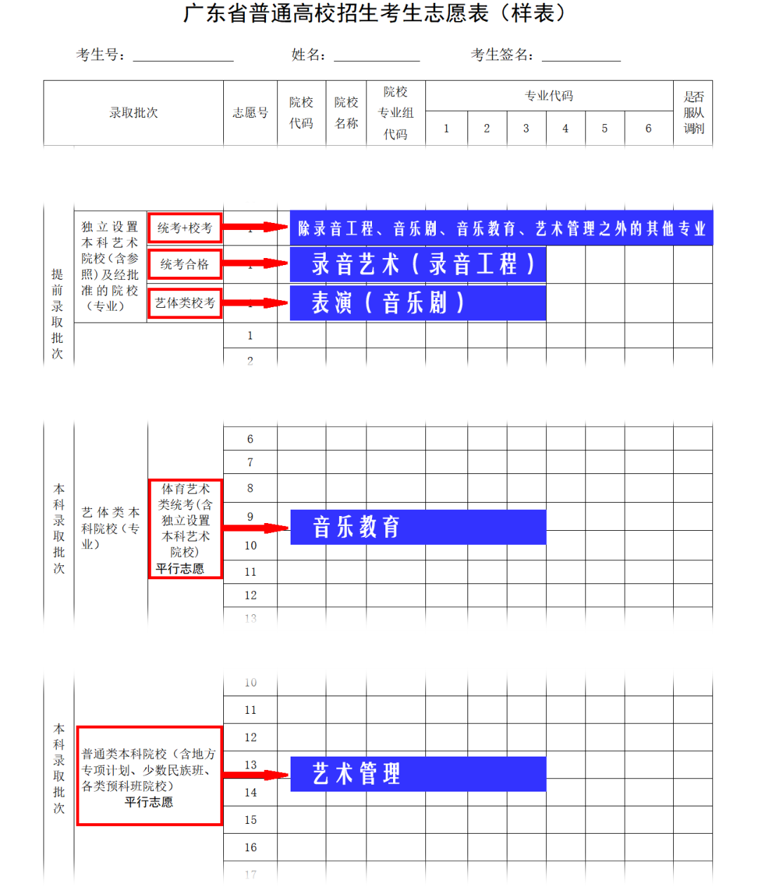 ·音乐教育专业、录音艺术专业(广东省):音乐学类合成总分=高考文化成绩×40%+音乐学类总分×2.5×60%。