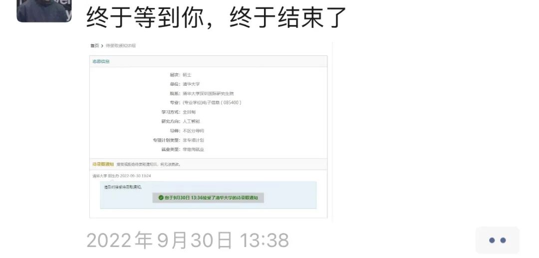 黄浩靖在收到清华待录取通知后发的朋友圈