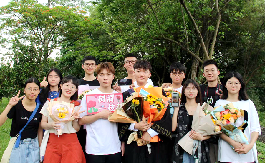 黄浩靖(2排右1)与师兄师姐合影回首这一路,黄浩靖觉得自己很幸运:“其实我的大学时光匆匆流逝