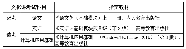 考试内容为我省中职学校所开设以上课程的基本知识,各科指定教材详见下表: